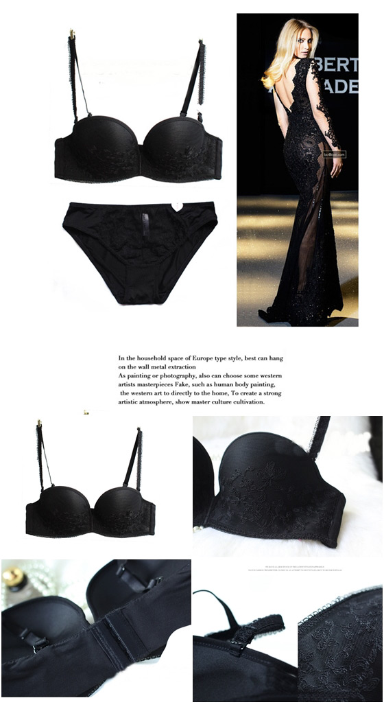 品名:法式刺繡蕾絲兩穿式內衣套組